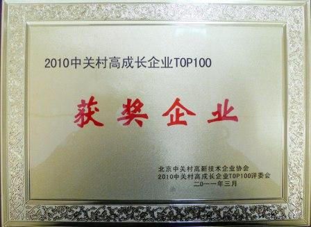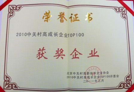 我公司榮獲“2010中關村高成長企業TOP100”榮譽稱號。